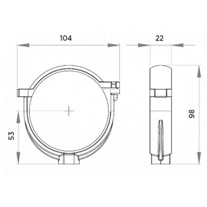 Полукруглая форма хомута обеспечивает жесткость крепления трубы. Отверстие для замыкания на внешней стороне упрощает монтаж. Форма посадочного места допускает крепление на любую поверхность (камень, кирпич, дерево).